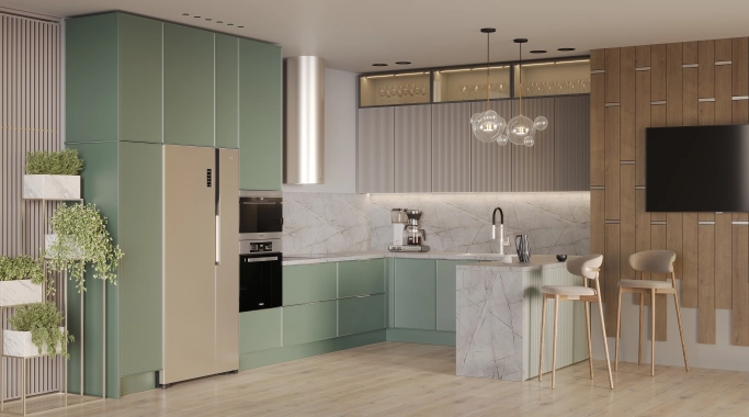 Кухня модерн — это выбор в пользу технологичности и эстетики. Купить современную кухню у нас можно с учётом всех деталей: от размеров до отделки. Надёжные материалы, актуальный дизайн и точная сборка обеспечивают долгий срок службы и комфорт в использовании.