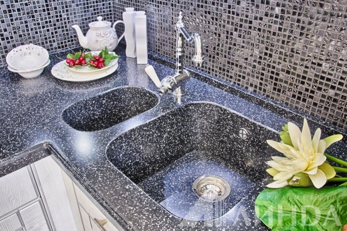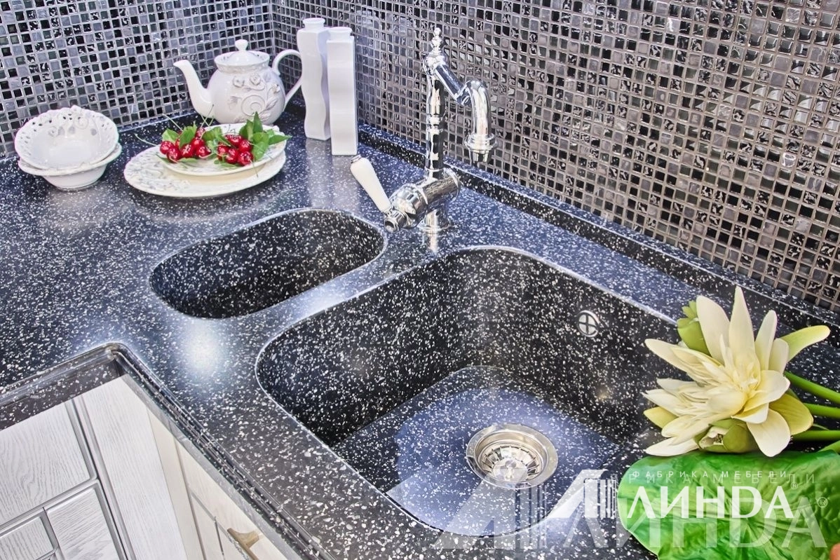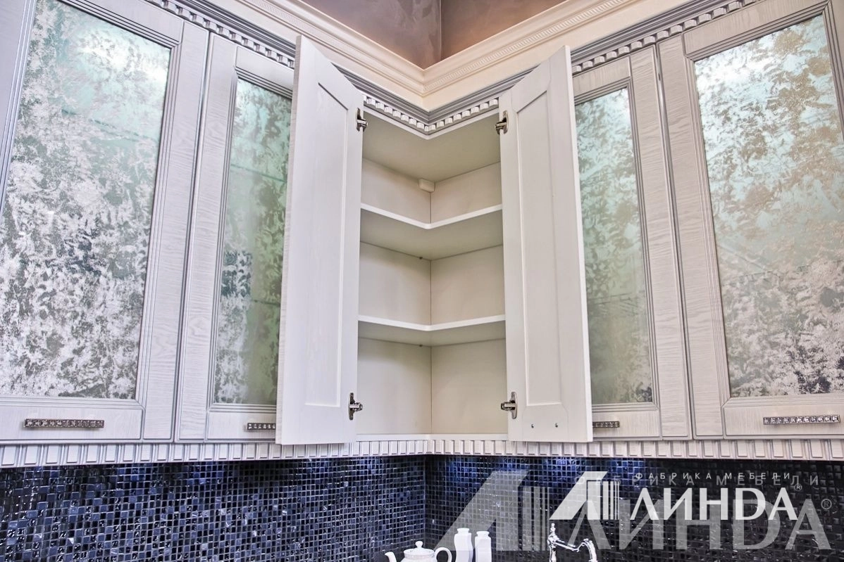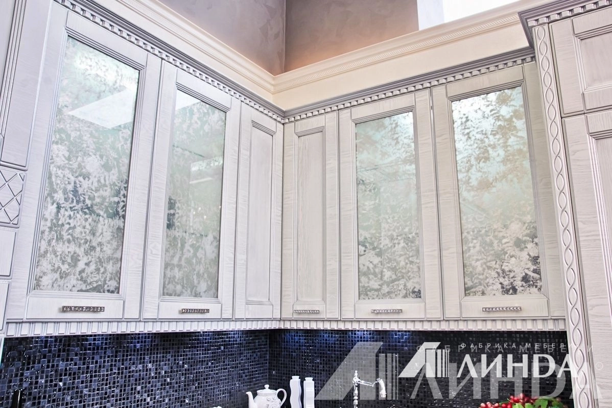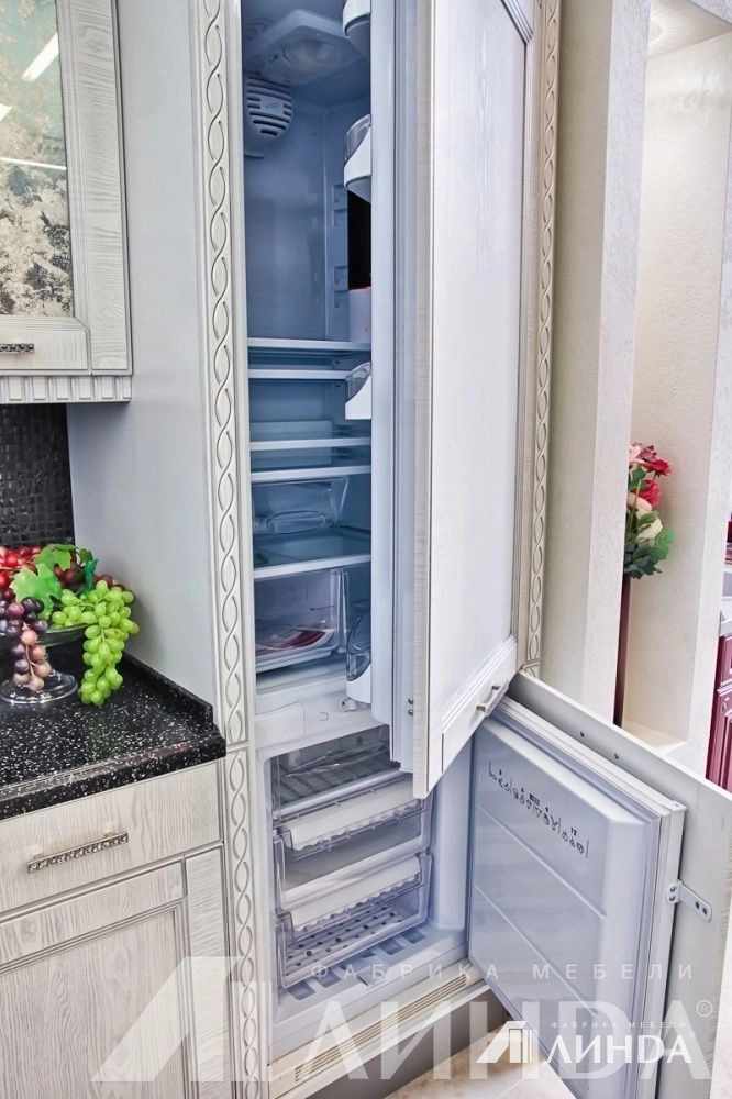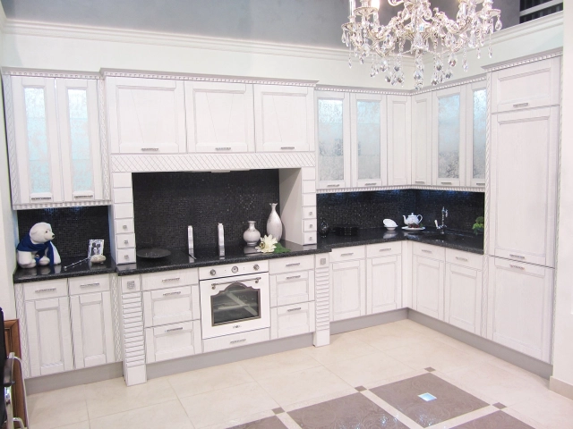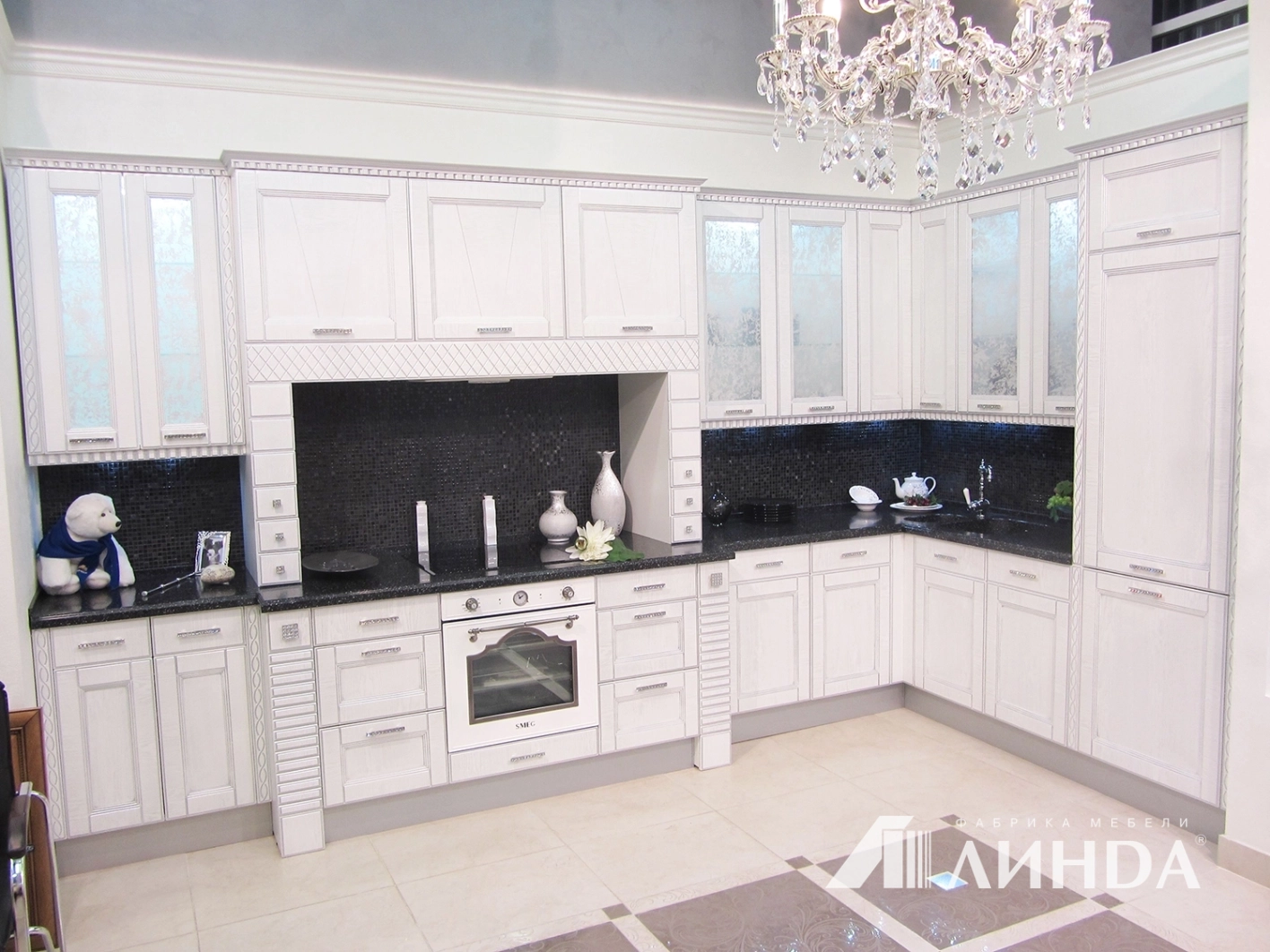 Классическая кухня "Анжу" воплощает в себе образ, навеянный великолепием французских речных долин, величием средневековых замков. Уникальные фасады изготовлены по сложной технологии в самых современных декорах. Белаятекстура дерева, оттененная серебряной патиной, великолепно сочетается с блестящими витринами из стекла Триплекс, создающего эффект патали. Все это великолепие подкреплено исключительной функциональностью, которую обеспечивает встроенная техника: на первый взгляд видны варочная поверхность и духовой шкаф, а за фасадами скрыты встроенная посудомоечная машина и холодильник в пенале. Для наибольшего удобства в зоне готовки, выкатные ящики оснащены системами полного выдвижения Blum Tandembox, а также по обе стороны от варочной поверхности встроены выкатные бутылочницы Vauth-Sagel, чтобы масла и приправы всегда были под рукой. Отдельного упоминания достойна шикарная черная столешница из искусственного камня, вкупе с мозаичным фартуком составляющая контраст светлым фасадам.