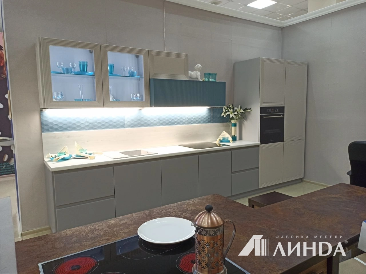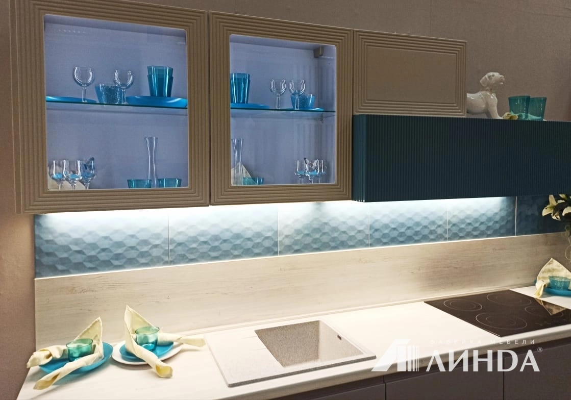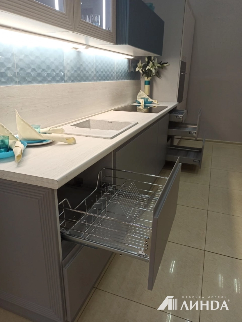 Фасады арктический серый, кашемир, аквамарин.