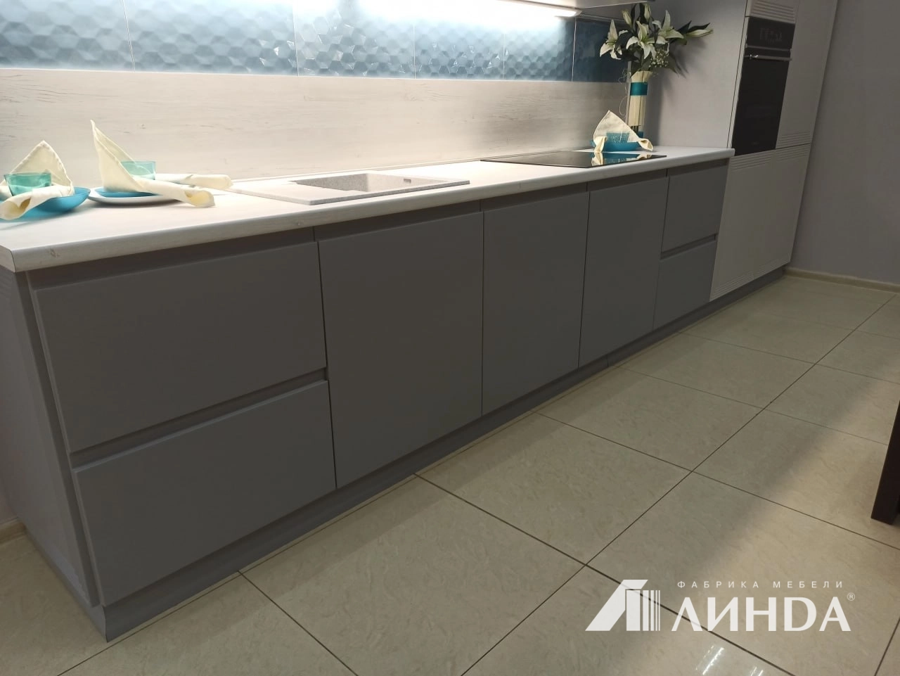 Длина 4200 (3000 по столешнице + 1200 пеналы)