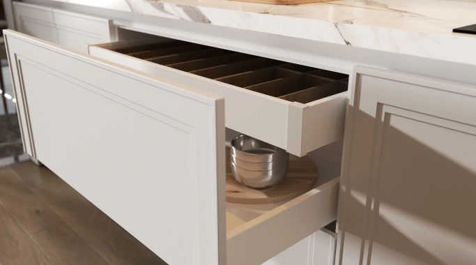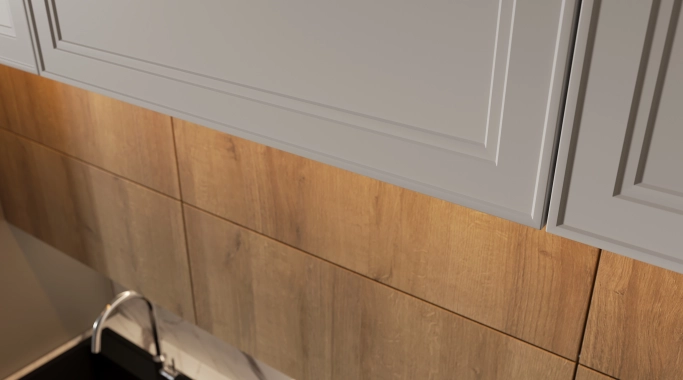 На современной кухне набирает обороты тренд, связанный с использованием «разорванных» фасадов. Этот стиль придает интерьеру оригинальности и особой привлекательности, а также добавляет визуальной легкости и воздушности. Вдохновением для этого дизайна стала река с красивым названием Лоймина. Её плавные изгибы отражаются в фасадах, и создают ощущение естественного потока. Такой мебельный элемент будет привлекать внимание и создавать уникальный акцент в интерьере.