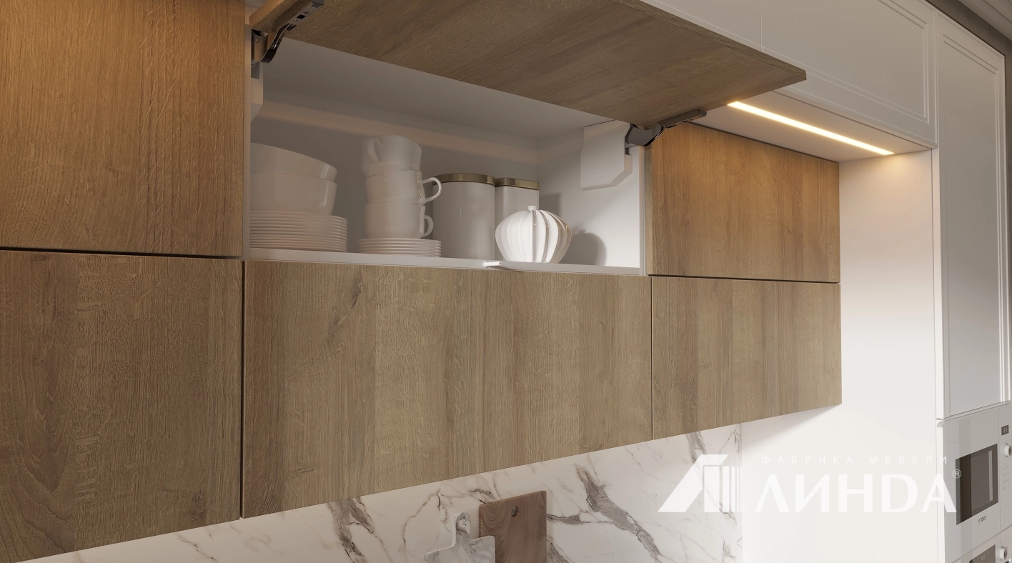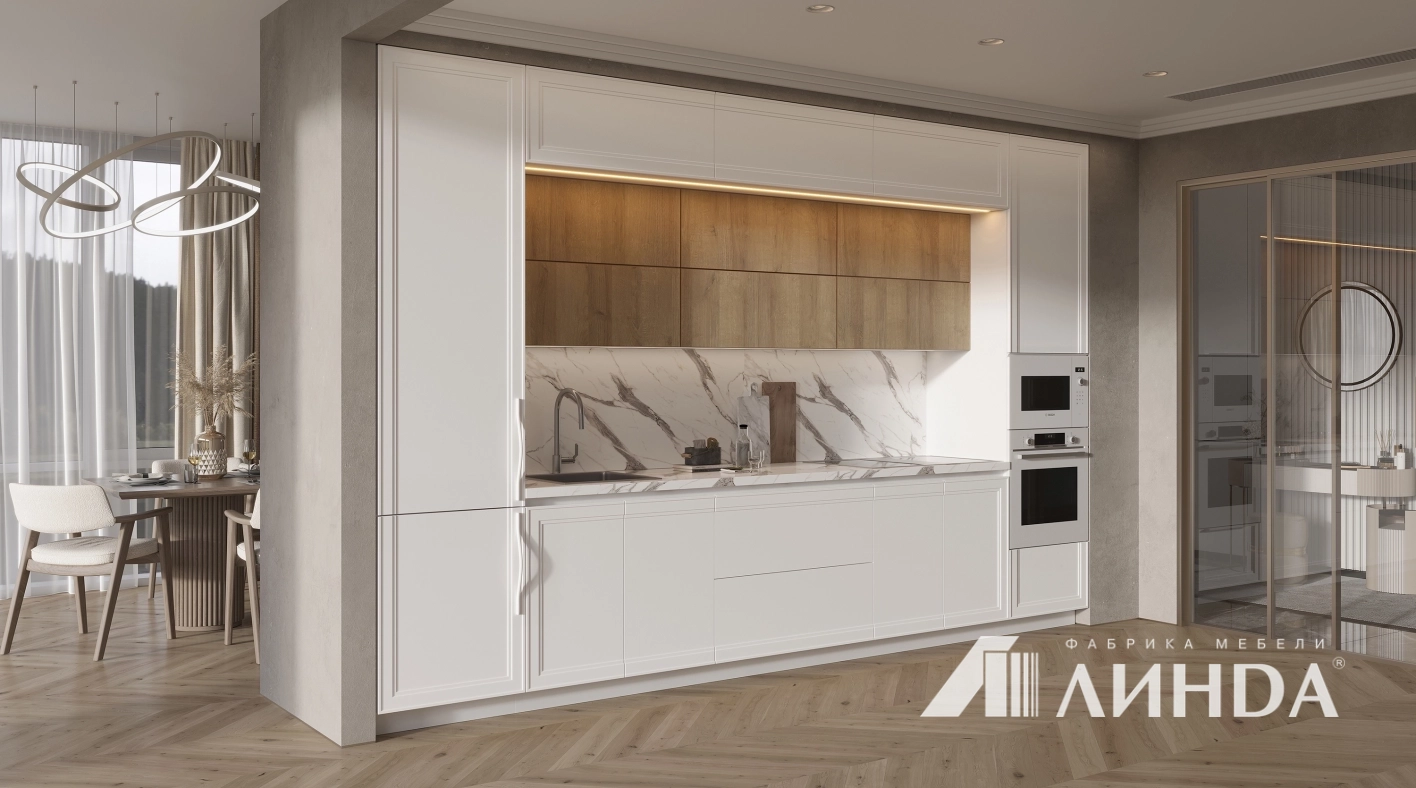 Вдохновленная изгибами реки Лоймина, эта кухня воплощает в себе ее плавность и грацию. Каждая деталь этой кухни напоминает о природной гармонии и величии реки, создавая атмосферу спокойствия и вдохновения. Белые фасады придают интерьеру грацию и простор, в то время как элементы из дерева добавят натуральности и уюта. Такое сочетание создаст неповторимый интерьер, который отразит последние тенденции и подчеркнет изысканный вкус владельца.