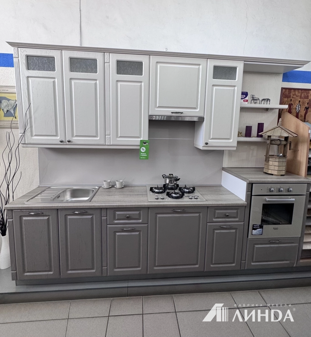 Вытяжка, варочная панель и духовой шкаф не входят в стоимость.